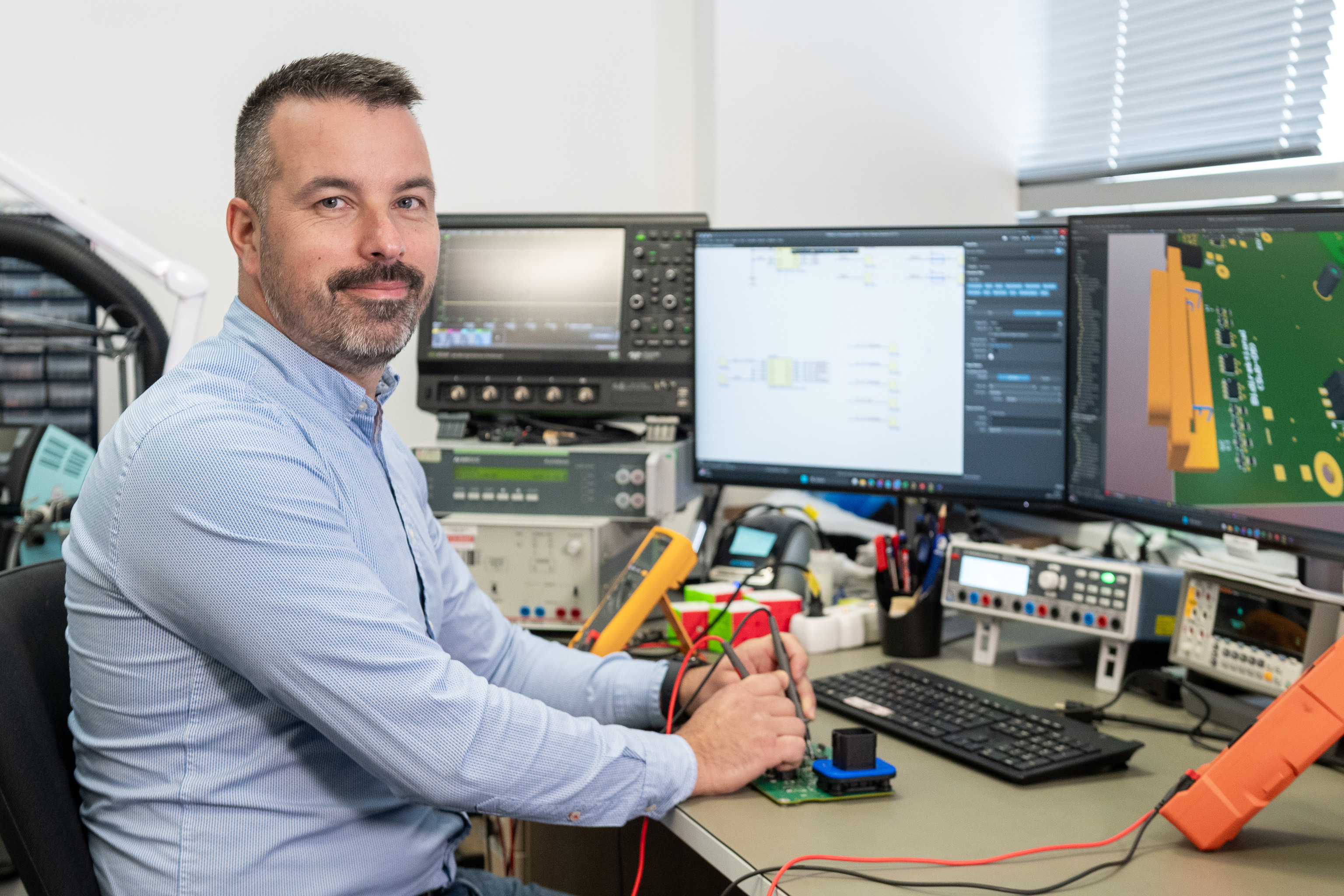 Zur Geschichte gehört auch, dass vor zwei Jahren etwas Interessantes in meiner Karriere geschah: Der ehemalige Lead-Designer im Hardwareentwicklungsteam bat mich um Unterstützung, ging dann für zwei Monate in „Elternzeit“ und beauftragte mich vorübergehend mit seiner Vertretung. Schließlich stellte sich heraus, dass er nicht zurückkehrt – seitdem bin ich der Lead-Designer für die Elektronik unseres ersten serienreifen, selbst entwickelten Inverters (MEB ECO).
